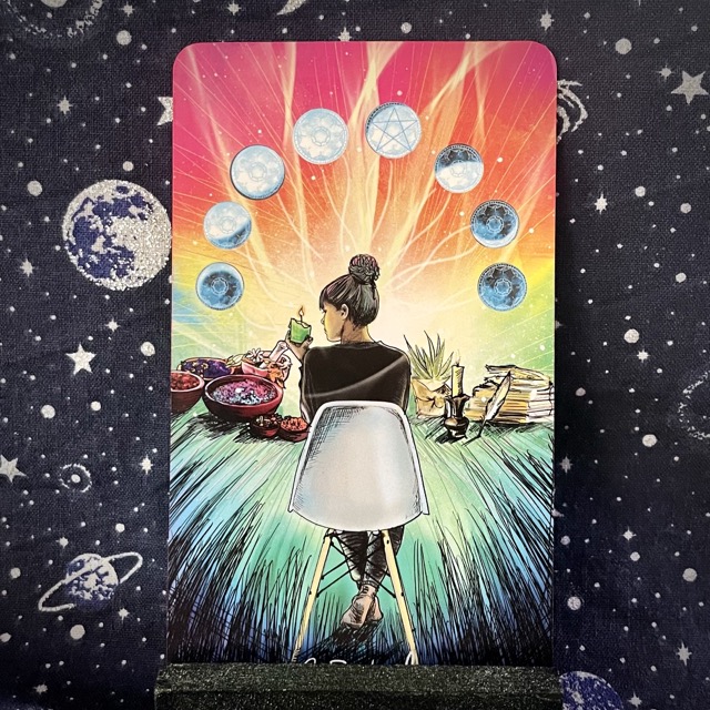 The Eight of Pentacles brings the clean, simple truth of repetition. It’s the grind that isn’t punishment, it’s devotion. The card points to the part of my life that’s hungry for refinement, not applause. This energy is methodical and grounded, almost monk-like. It’s the work I return to because it shapes me, not because anyone sees it. Today, I pay attention to the small things: the way I move, the way I speak, the way I honor my craft. Skill grows quietly. Progress comes from my hands, not my fantasies.